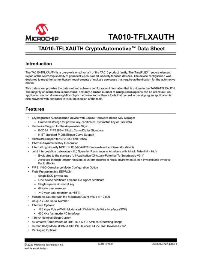 TA010-TFLXAUTH CryptoAutomotive Data Sheet