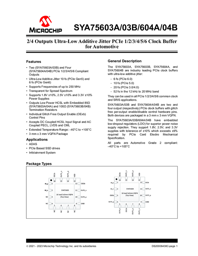 SYA75603 SYA75603/604 - 2/4 Outputs Ultra-Low Additive Jitter PCIe 1/2/3/4/5/6 Clock...