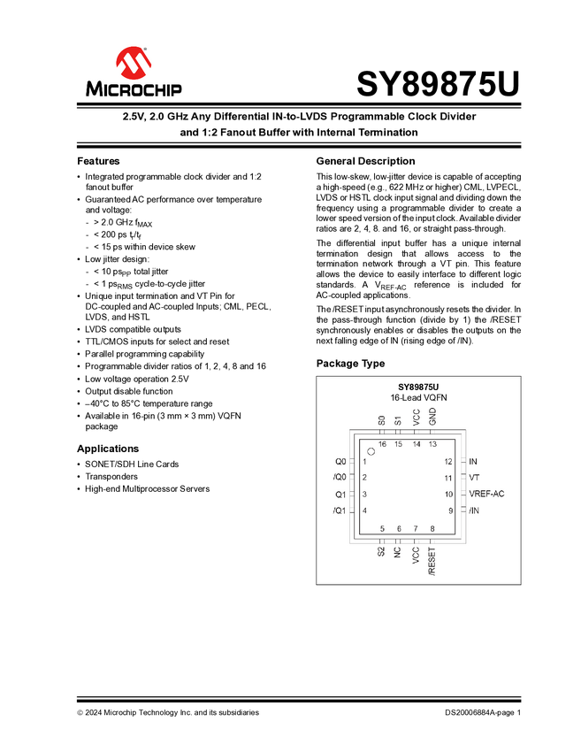 SY89875U 2.5V, 2.0 GHz Any Differential IN-to-LVDS Programmable Clock Divider and 1:...