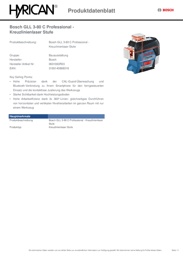 0601063R03 Laser liniowy Bosch Professional GLL3-80C 0601063R03 Maksymalny zasięg: 120...