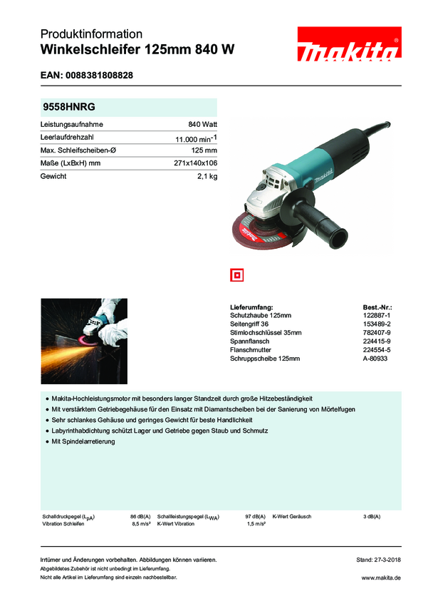 9558HNRG Szlifierka kątowa Makita S_0380_2991522 9558HNRG 840 W