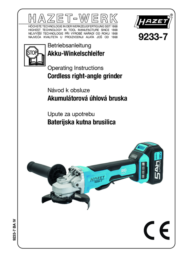 9233-010 Akumulatorowa szlifierka kątowa Hazet HAZET 9233-010