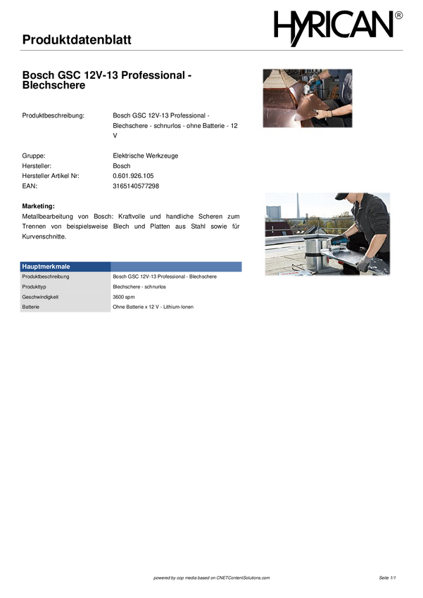 Akumulatorowe nożyce do blachy Bosch Professional GSC 12V-13 0601926105 bez akumulatora, bez ładowarki