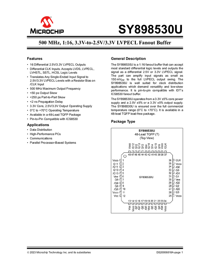 SY898530U - 500MHz, 1:16, 3.3V-to-2.5V/3.3V LVPECL Fanout Buffer