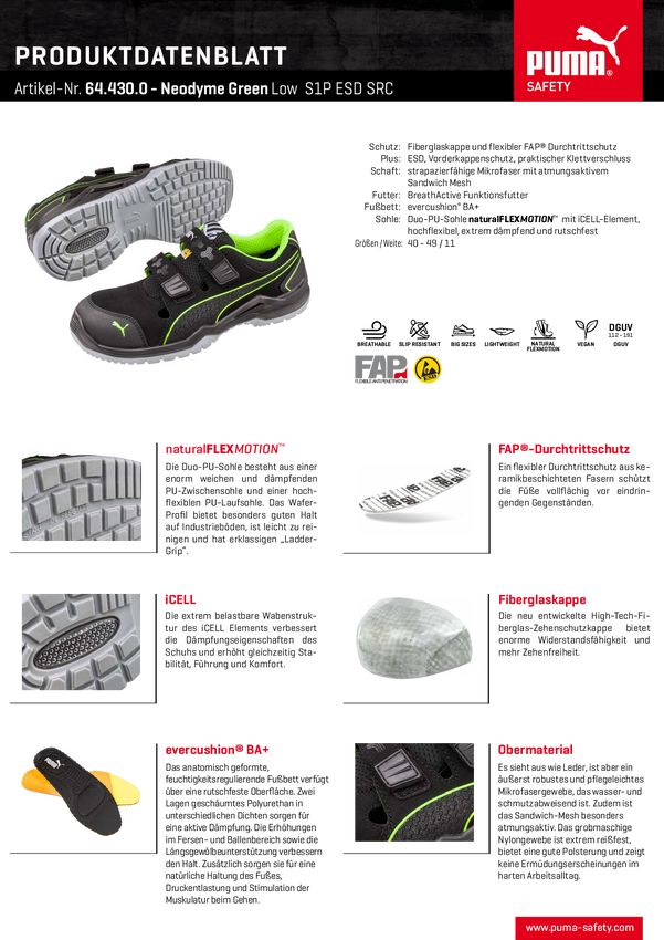 644300-40 PUMA Neodyme Green Low 644300-40 ESD Obuwie ochronne S1P Rozmiar buta (EU):...