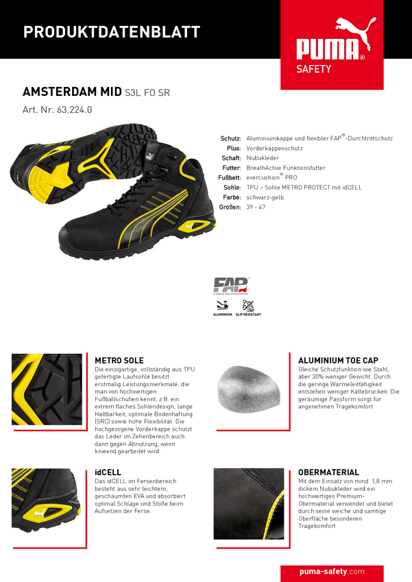 632240-39 PUMA Amsterdam Mid 632240-39 Buty ochronne S3 Rozmiar buta (EU): 39 czarny,...