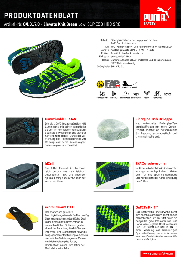 643170-39 PUMA Elevate Knit Green Low 643170-39 Obuwie ochronne S1P Rozmiar buta (EU)...
