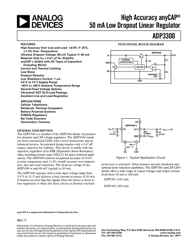 ADP3300 High Accuracy anyCAP 50 A Low Dropout Linear Regulator