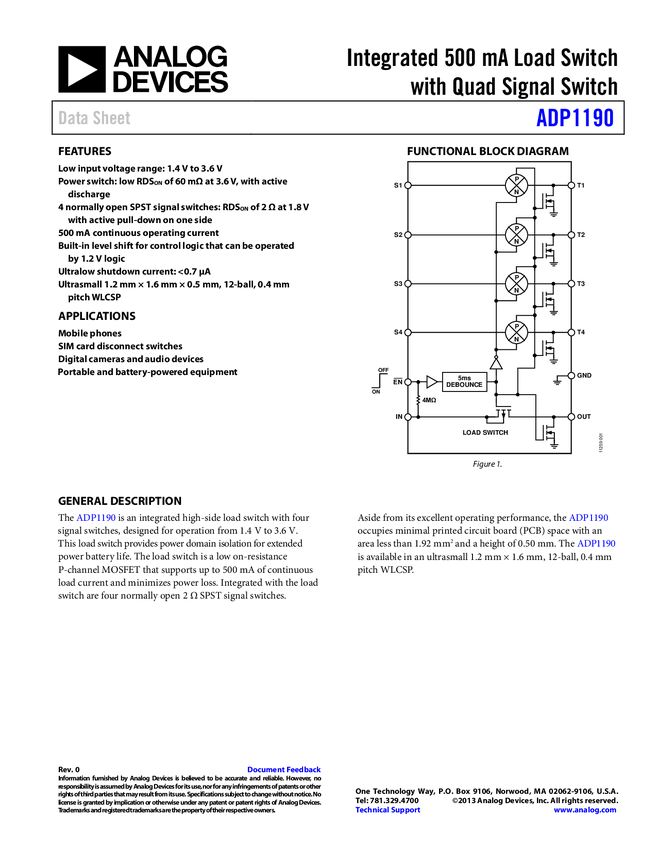 ADP1190 Integrated 500A Load Switch with Quad Signal Switch