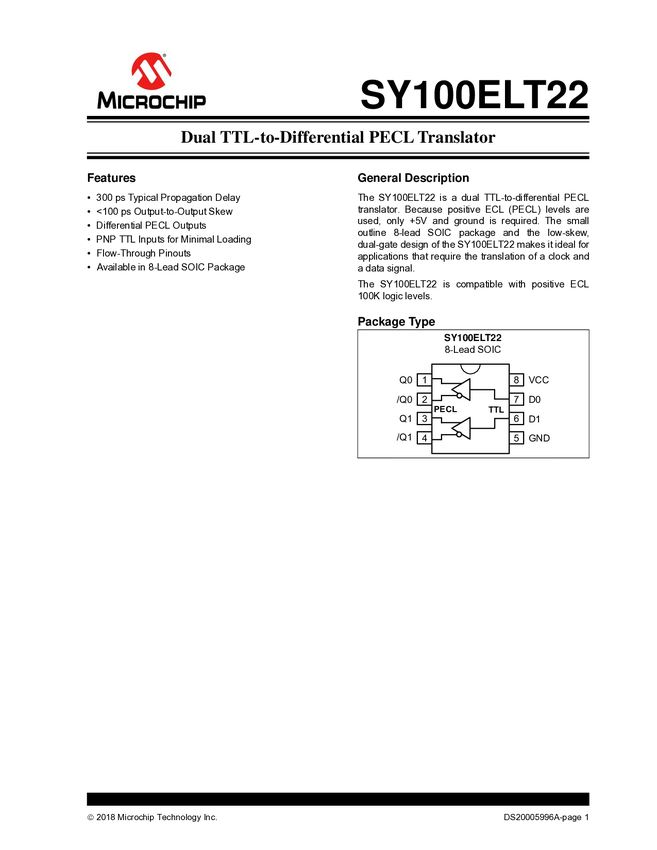 SY100ELT22 - Dual TTL-to-Differential PECL Translator