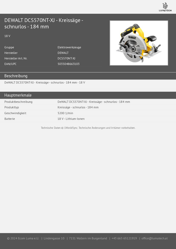 DCS570NT-XJ Piła tarczowa DEWALT DCS570NT Głębokośc cięcia maks. (90°) 64 mm