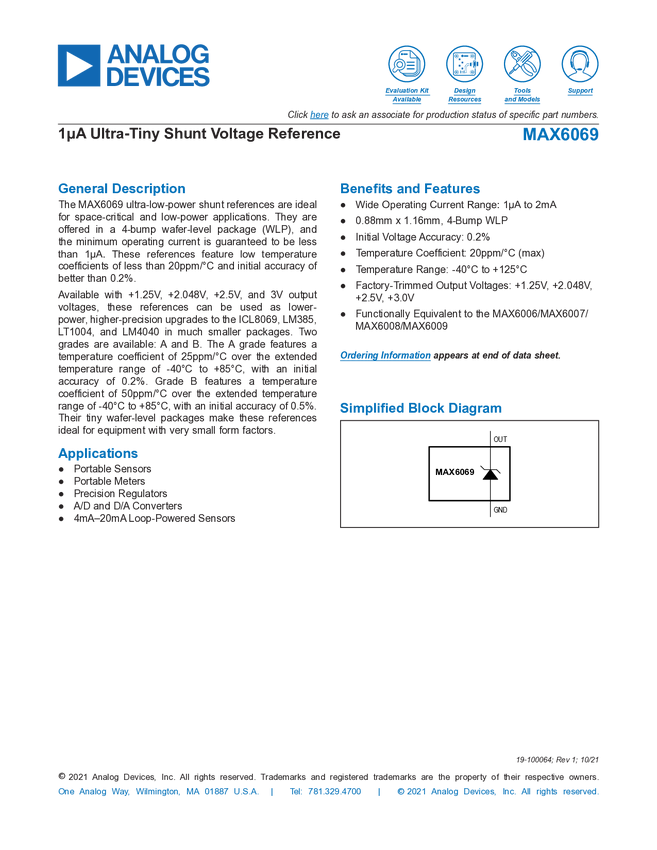 MAX6069 1μA WLP Precision Shunt Voltage Reference