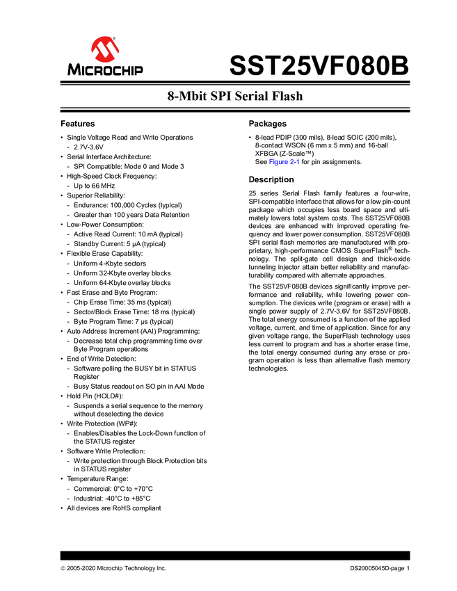 SST25VF080B Data Sheet - 8-Mbit SPI Serial Flash