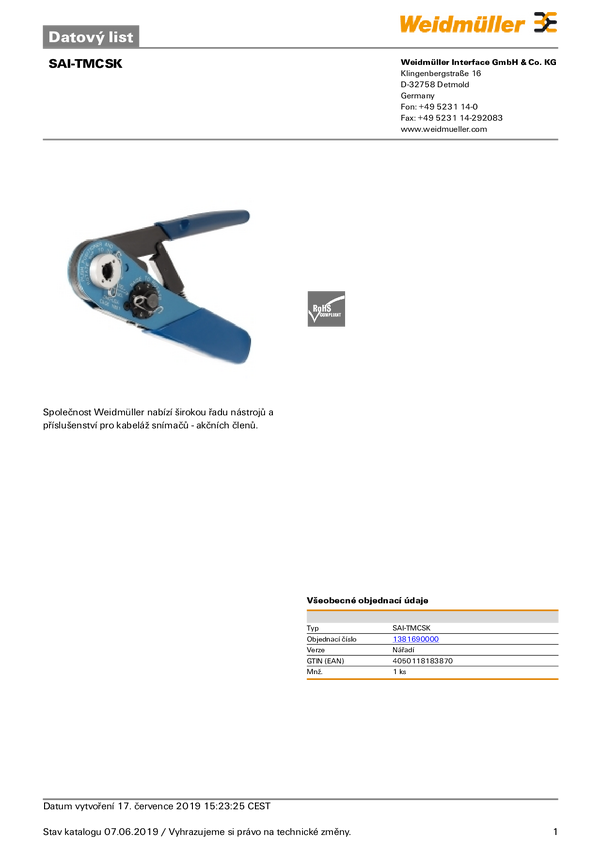 1381690000 Weidmüller SAI-TMCSK 1381690000 Wkładka do zaciskarki