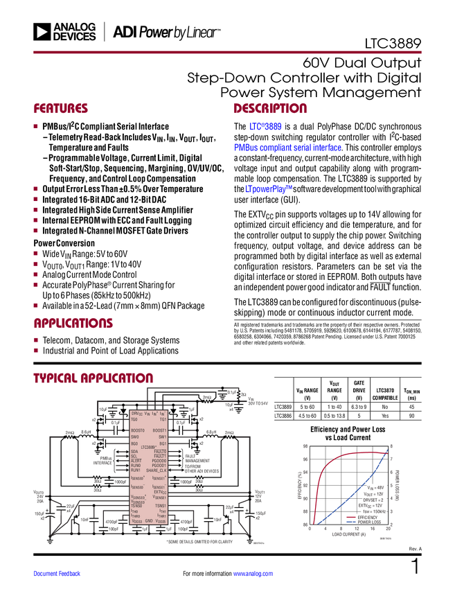 LTC3889 60V Dual Output Step-Down Controller with Digital Power System Management