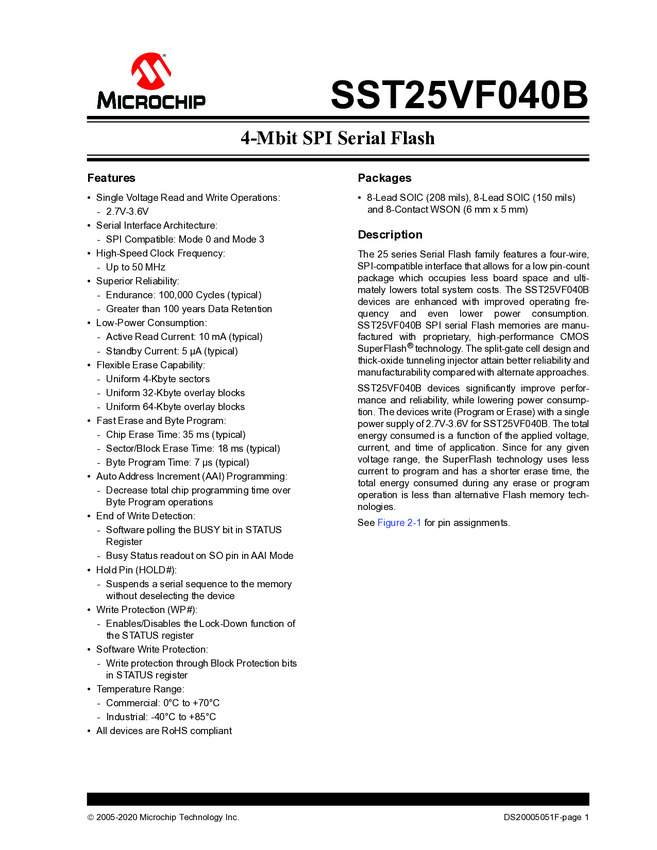 SST25VF040B 4-Mbit SPI Serial Flash Data Sheet