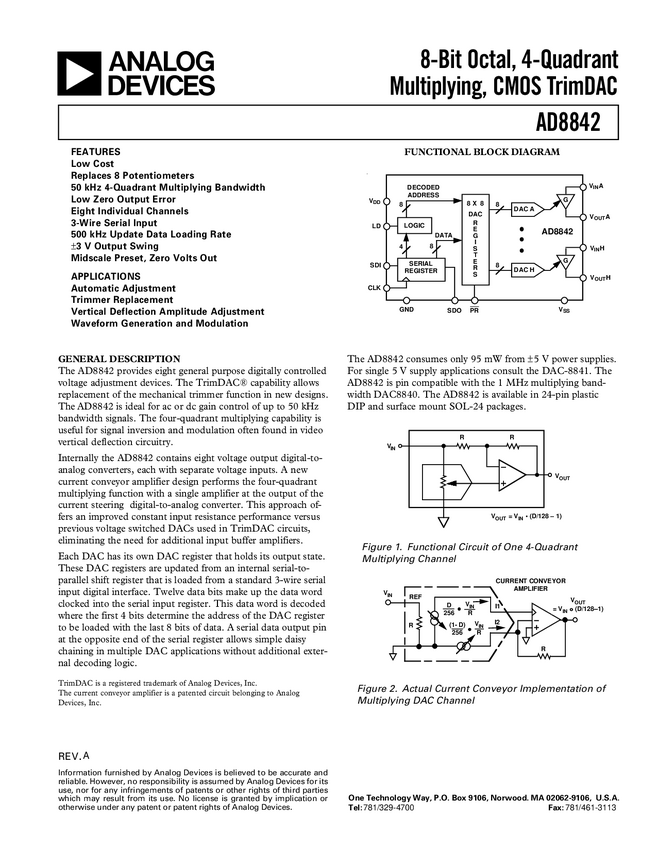 AD8842 8-Bit Octal, 4-Quadrant Multiplying, CMOS TrimDAC