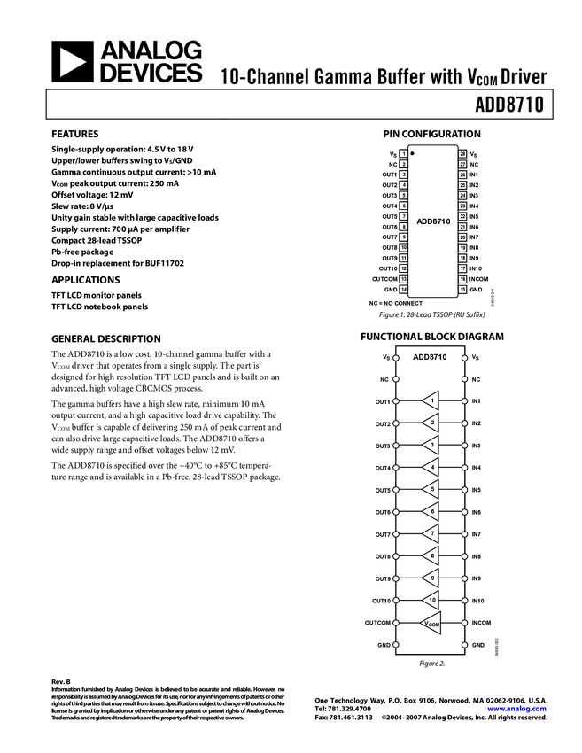ADD8710 10-Channel Gamma Buffer with V Driver