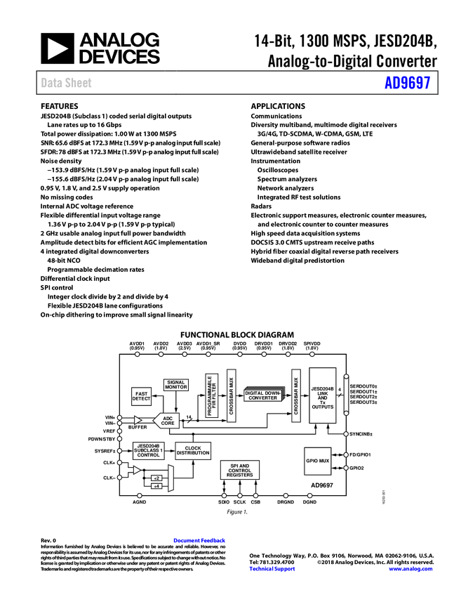 AD9697 14-Bit, 1300 MSPS, JESD204B, Analog-to-Digital Converter