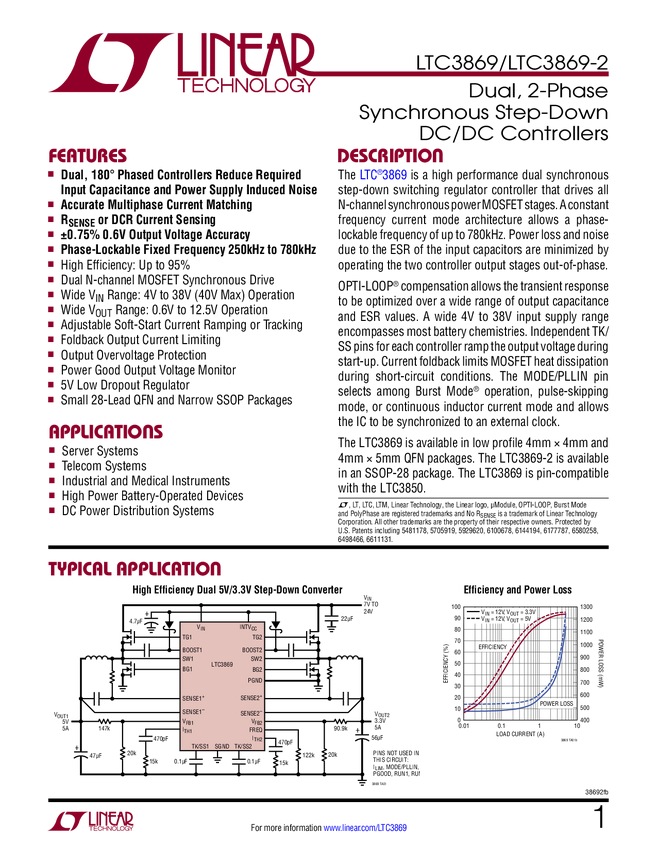LTC3869 Dual, 2-Phase Synchronous Step-Down DC/DC Controllers