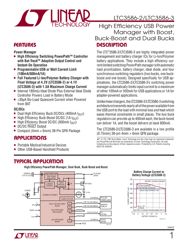 LTC3586-2 LTC3586-3 High Efficiency USB Power Manager with Boost, Buck-Boost and Dual Bucks