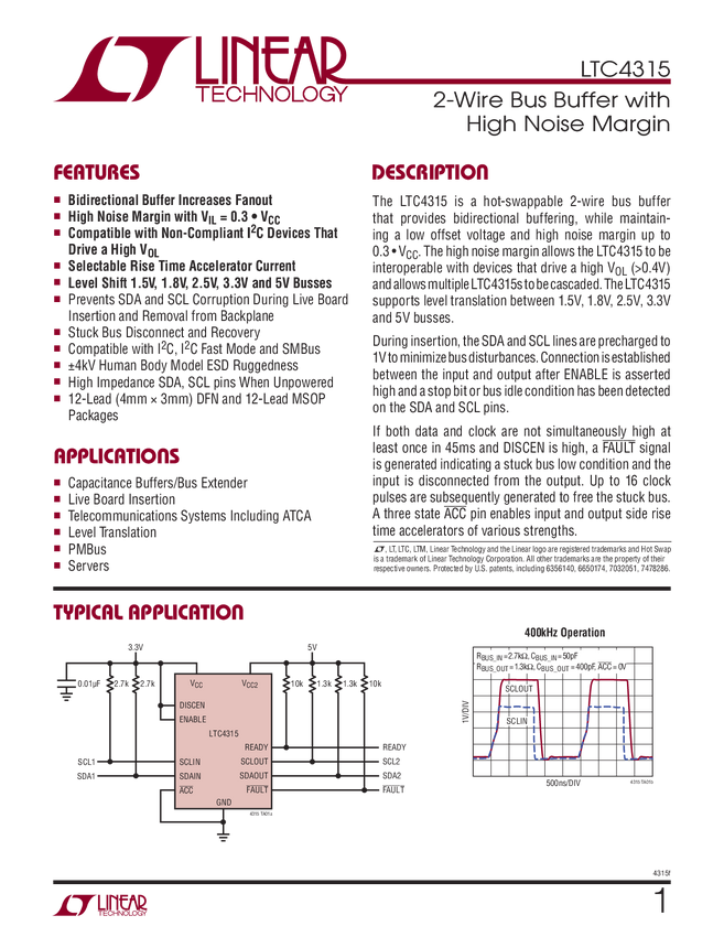 LTC4315 2-Wire Bus Buffer with High Noise Margin