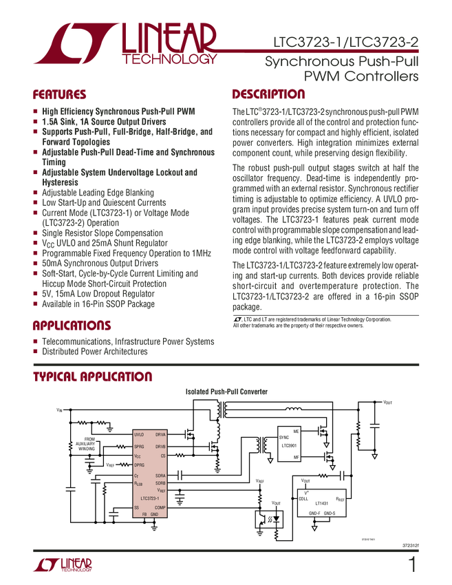 LTC3723 Synchronous Push-Pull PWM Controllers