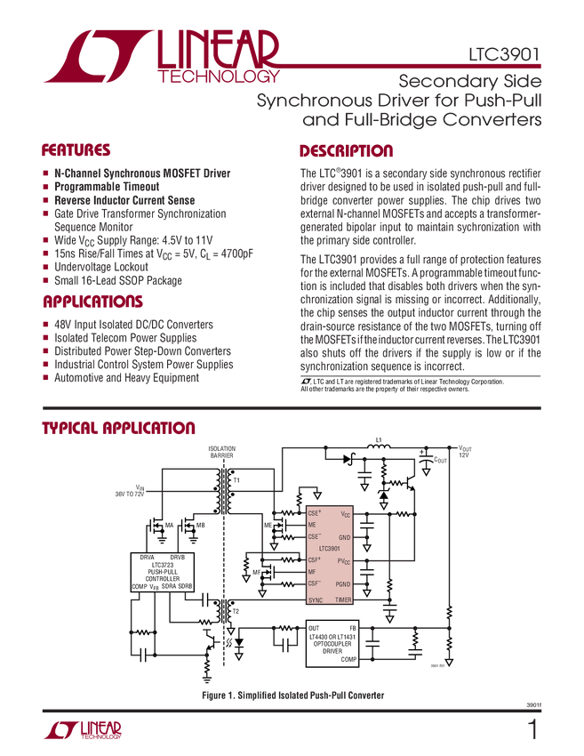 LTC3901 Secondary Side Synchronous Driver for Push-Pull and Full-Bridge Converters
