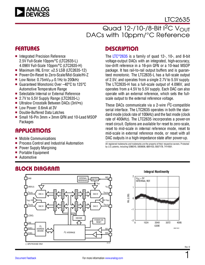 LTC2635 Quad 12-/10-/8-Bit IC V DACs with 10ppm/°C Reference