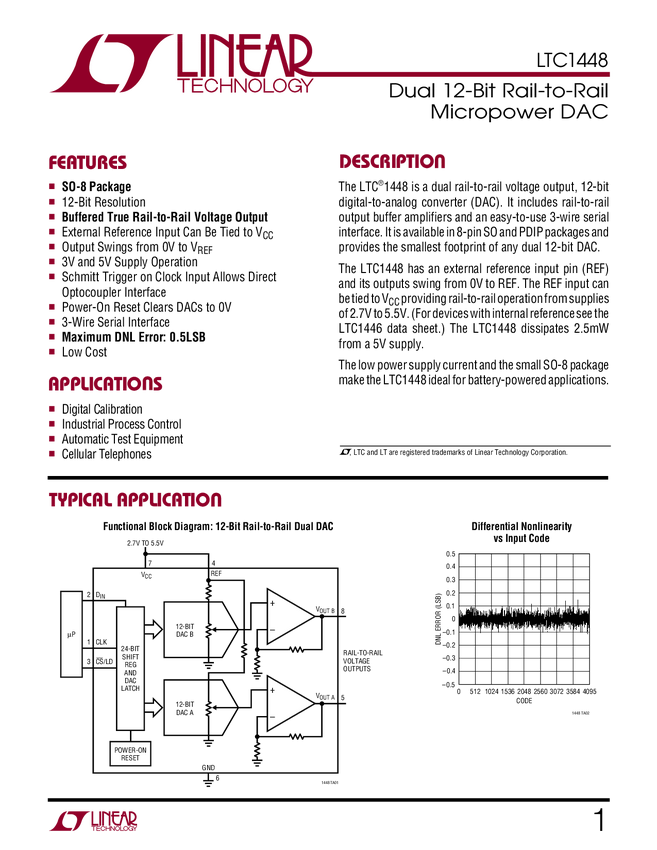 LTC1448 Dual 12-Bit Rail-to-Rail Micropower DAC