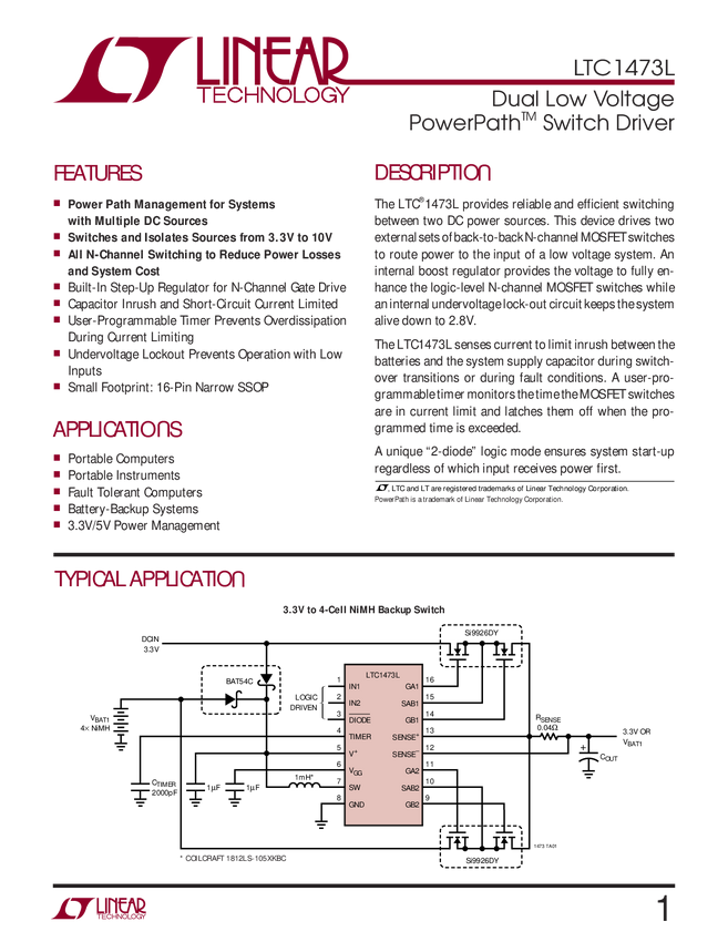 LTC1473L Dual Low Voltage PowerPath Switch Driver