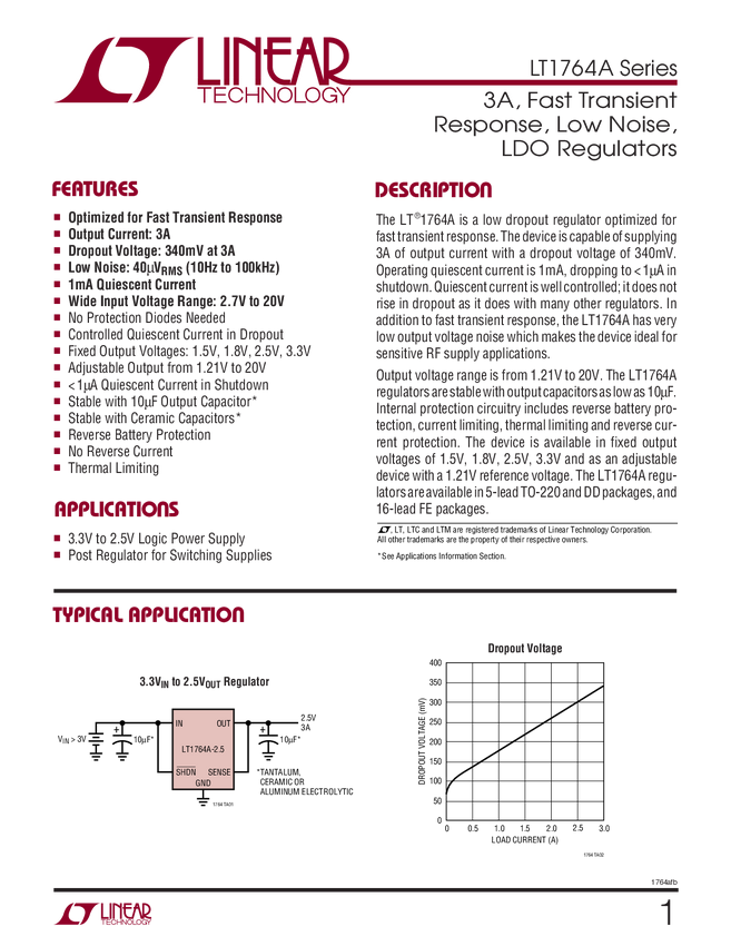 LT1764A 3A, Fast Transient Response, Low Noise, LDO Regulators