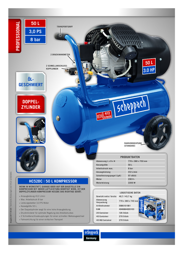 5906101901 Sprężarka powietrza Scheppach HC52DC 8 bar