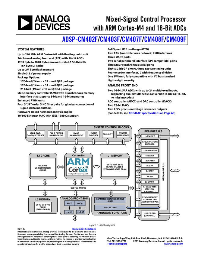 ADSP-CM408F, ADSP-CM407F, ADSP-CM402F, ADSP-CM409F