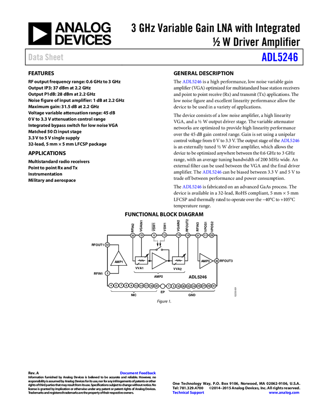 ADL5246 3 GH Variable Gain LNA with Integrated ½ W Driver Amplifier
