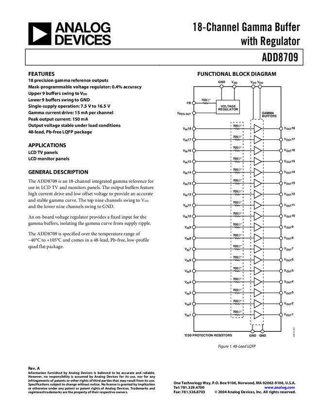 ADD8709 18-Channel Gamma Buffer with Regulator