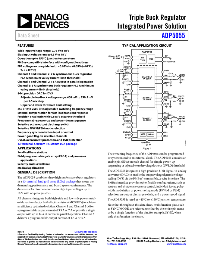 ADP5055 Triple Buck Regulator Integrated Power Solution