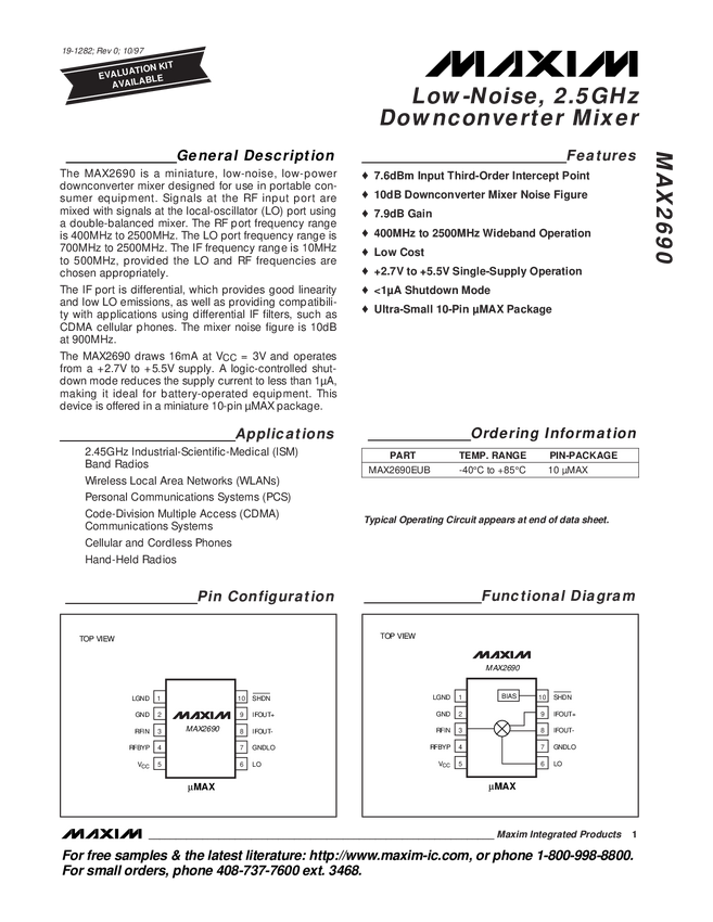 MAX2690 Low-Noise, 2.5GHz Downconverter Mixer