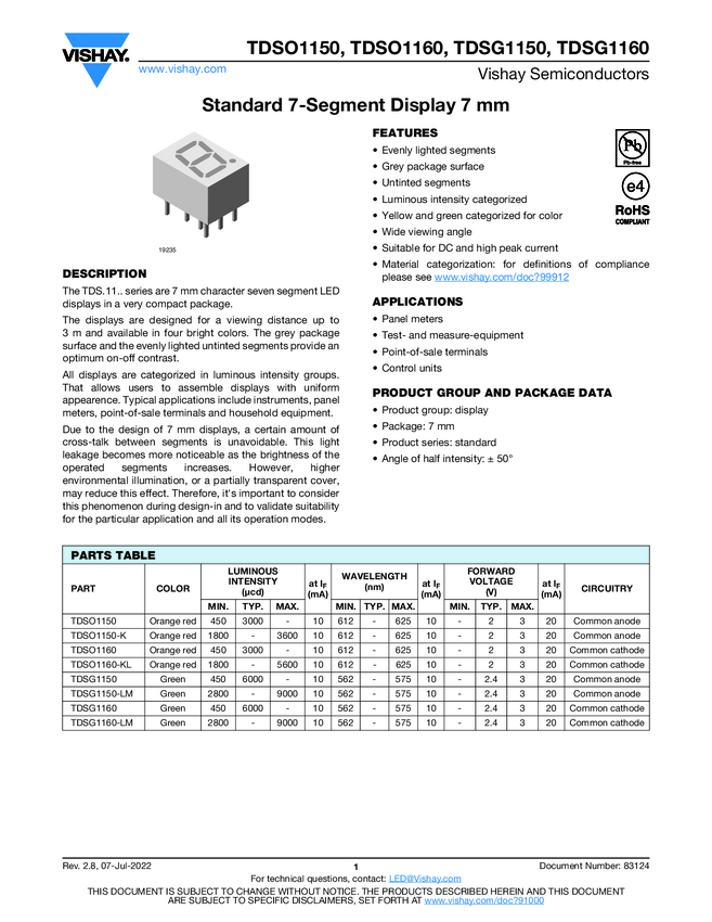 TDSG1160 Standard 7-Segment Display 7 mm