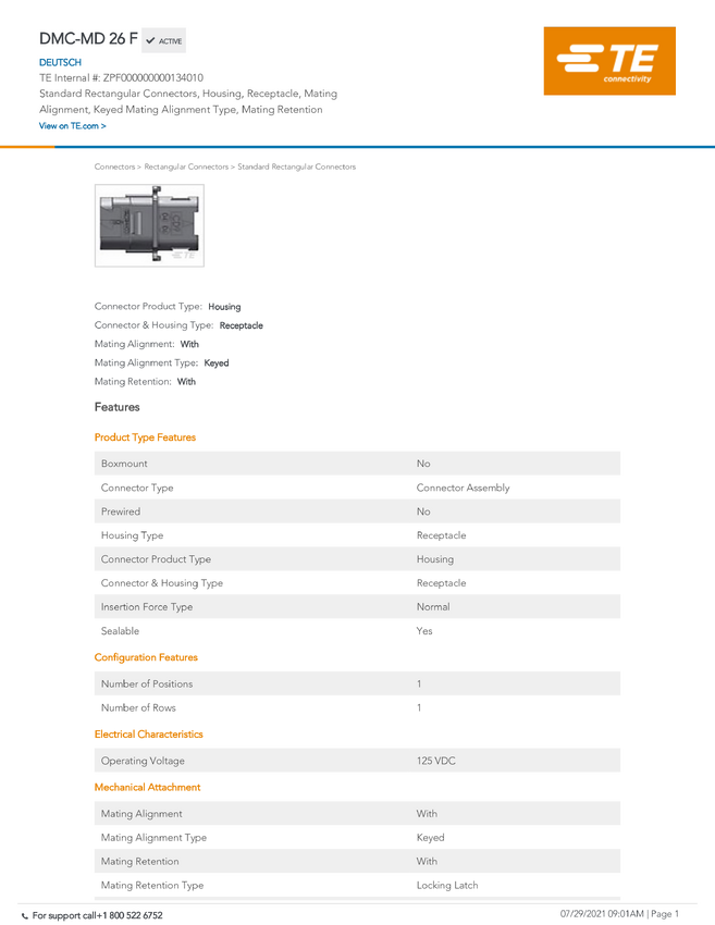 ZPF000000000134010 TE Connectivity ZPF000000000134010 TE DE DMC-M Single Cavity, 1 szt.
