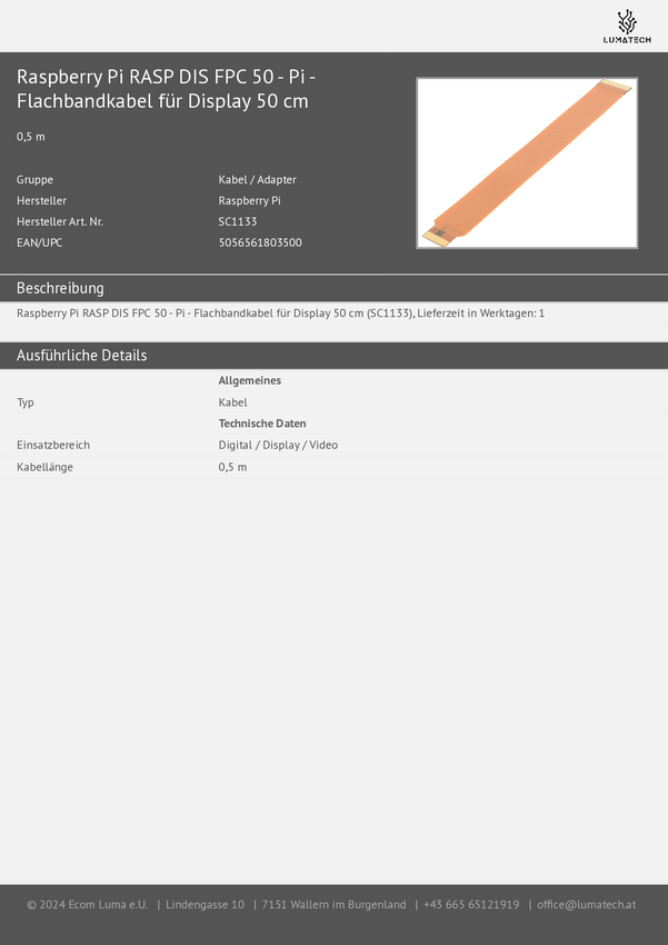 SC1133 Kabel monitora Raspberry Pi® SC1133 1 szt.