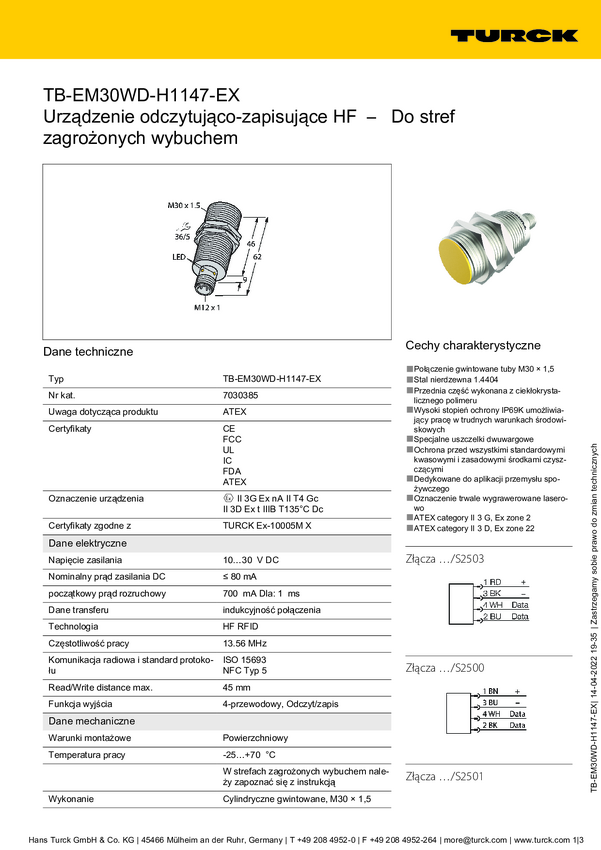 7030385 Turck TB-EM30WD-H1147-EX Głowica do odczytu i zapisu