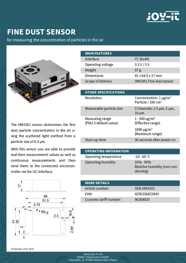 SEN-HM3301 Moduł czujnika Joy-it SEN-HM3301 1 szt.