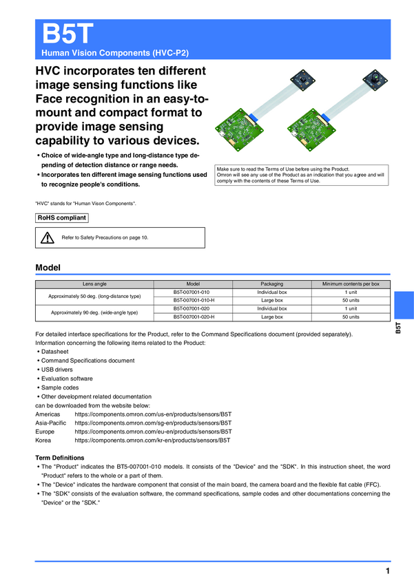 B5T-007001-010-H Moduł do rozpoznawania twarzy Omron B5T-007001-010-H