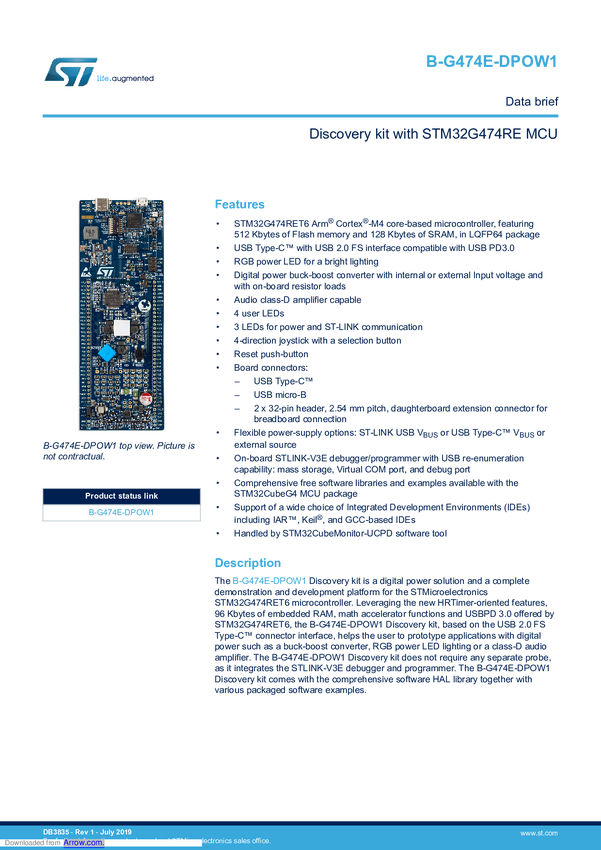 B-G474E-DPOW1 STMicroelectronics B-G474E-DPOW1 Płytka rozwojowa 1 szt.