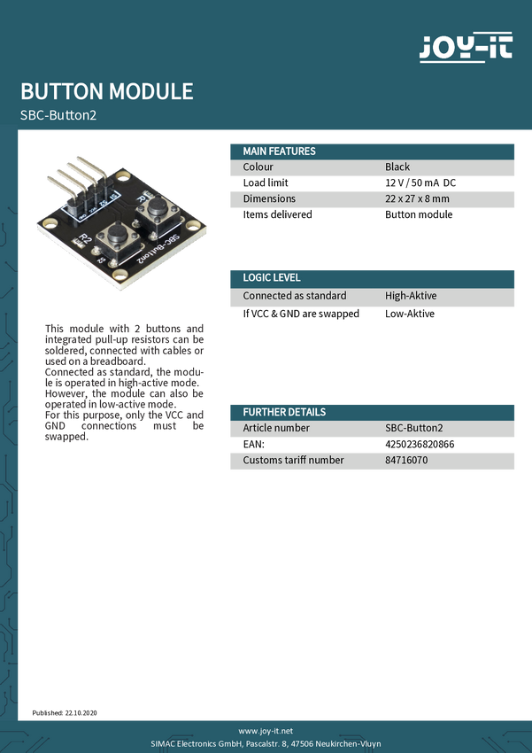 Płyta rozszerzeń Joy-it SBC-Button2 1 szt.