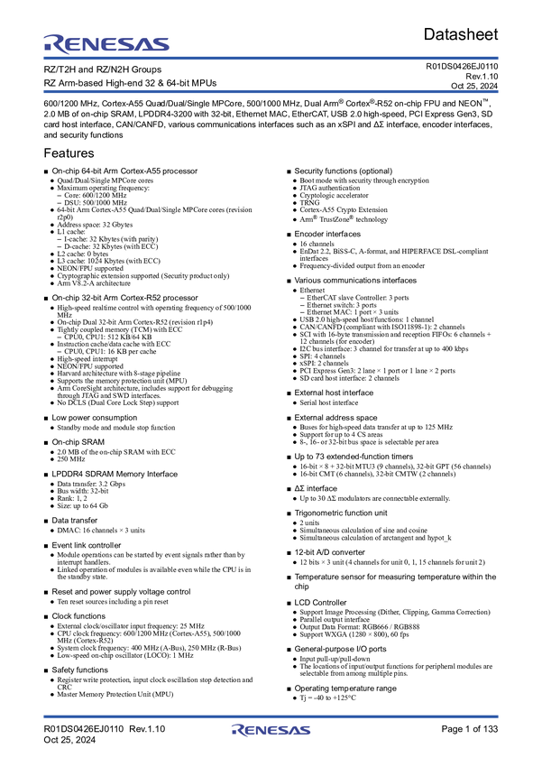 RZ/T2H Advanced High-End MPU with Integrated Powerful Application Processing and H...