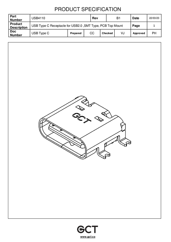 Złącze; USB C; gniazdo; Fully SMT; PIN: 16; pozioma; top board mount; 5A; 48V; USB4110-GF-A; GCT