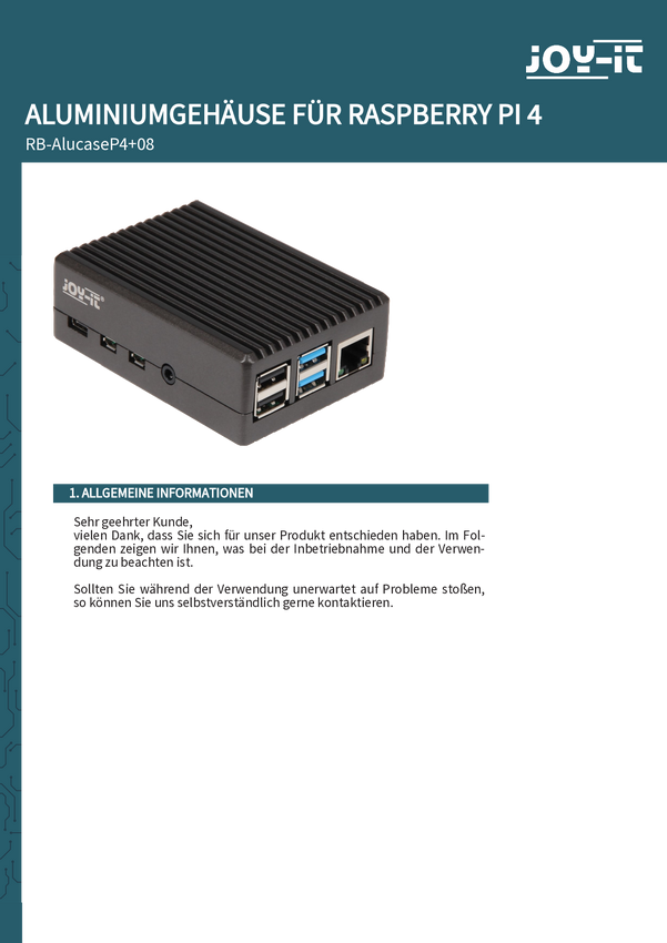 rb-alucaseP4+08 Obudowa SBC Joy-it rb-alucaseP4+08 Raspberry Pi® odlew aluminiowy czarny
