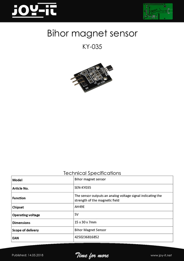 SEN-KY035BM Moduł czujnika magnetycznego Joy-it SEN-KY035BM 1 szt.